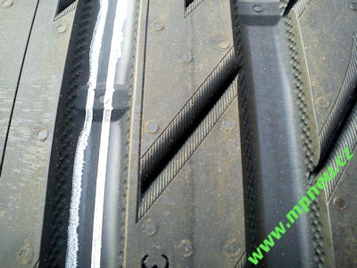 krajního dezénového bloku (viz obrázek níže). Tyto eliptické drážky mají za úkol zvyšovat odolnost